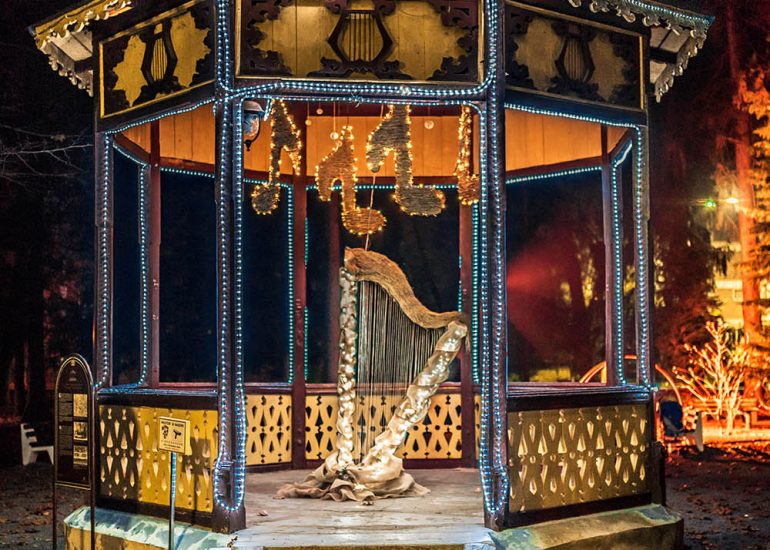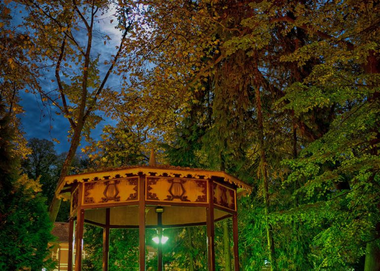 Od starih objekata u Julijevom parku pažnju svakako zavređuje glazbeni paviljon i to zbog dvije stvari – budući da je ovjekovječen na Hühnovoj litografiji, znamo da se na istom mjestu u daruvarskom parku nalazi više od 160 godina i to u gotovo neizmijenjenom stanju!